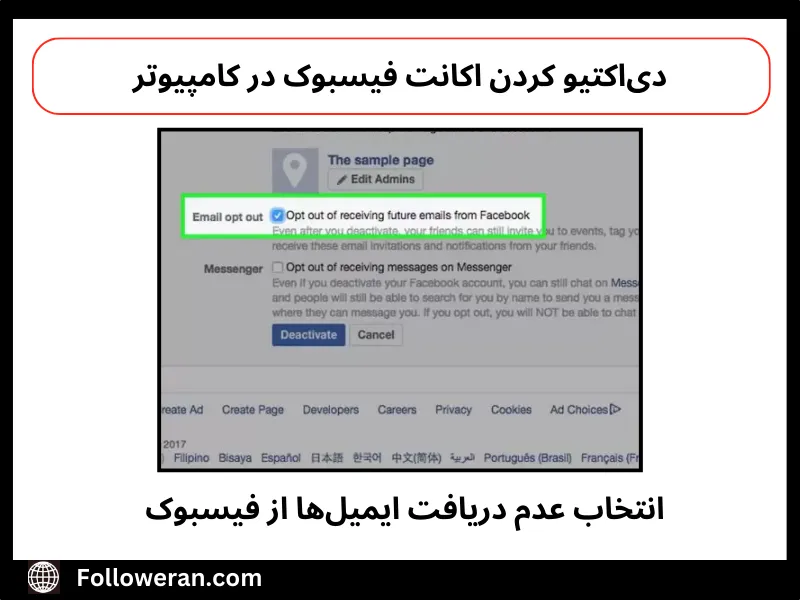دي اكتيو كردن فيس بوك در کامپیوتر