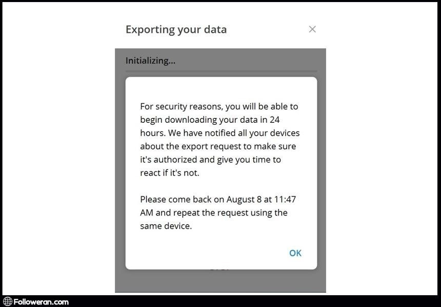 •  مدت زمان ۲۴ ساعت طول می‌کشد تا تلگرام درخواست اکسپورت را پردازش کند.
