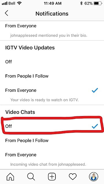 به پایین صفحه بروید سپس در قسمت Video Chats گزینه From Everyone را تیک بزنید. در صورتیکه میخواهید فقط فالورهای شما بتوانند با شما تماس بگیرند میتوانید گزینه From People I Follow را فعال کنید.