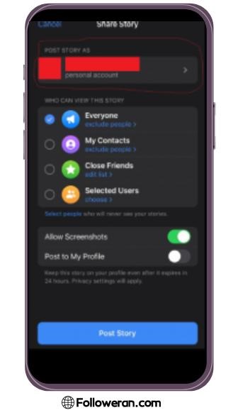 - نمایش استوری برای همه: با انتخاب این گزینه، استوری شما برای همه مخاطبان شما نمایش داده میشود.